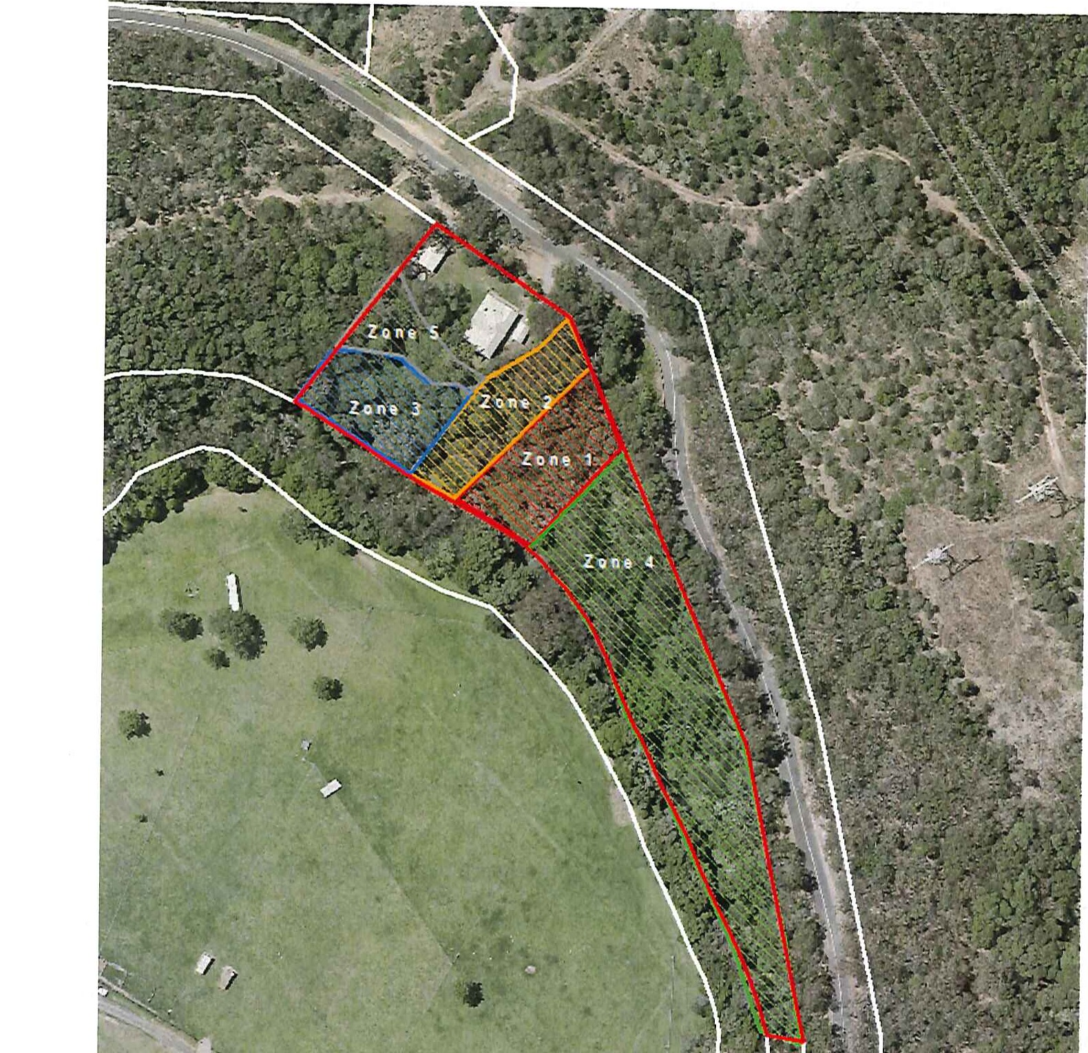 For the purpose of ecological restoration, it is helpful to divide your property's vegetation into management zones based on the type and intensity of management required and logistical considerations e.g. ease of access. Management zones can assist with prioritising work (based on the invasiveness of weeds present and their flowering/seeding periods as well as the ecological value of the zone e.g. endangered plants/ecosystem) and maintaining focus and follow-up control, to ensure weed control efforts are not wasted. Management zones on your property are based on the lantana control that you have carried out to date, and are recommended to be: